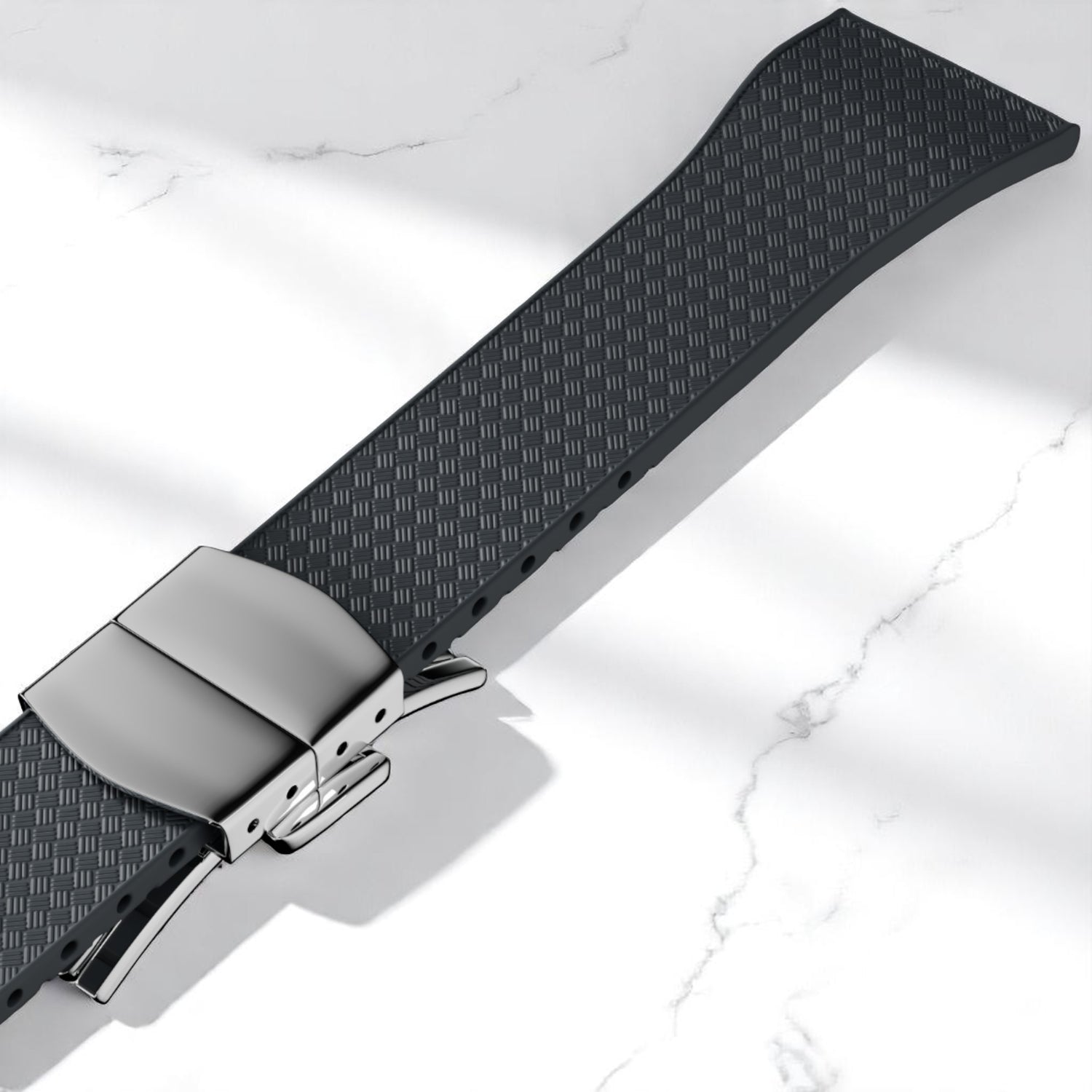 Made from high-performance FKM fluorine rubber—an essential material in the national defense industry—this strap offers exceptional durability and functionality. It features excellent mechanical strength, oil resistance, and elasticity, while also being fire-resistant, corrosion-resistant, waterproof, and sweat-proof. Ideal for both demanding environments and everyday wear, it ensures long-lasting comfort and reliability.