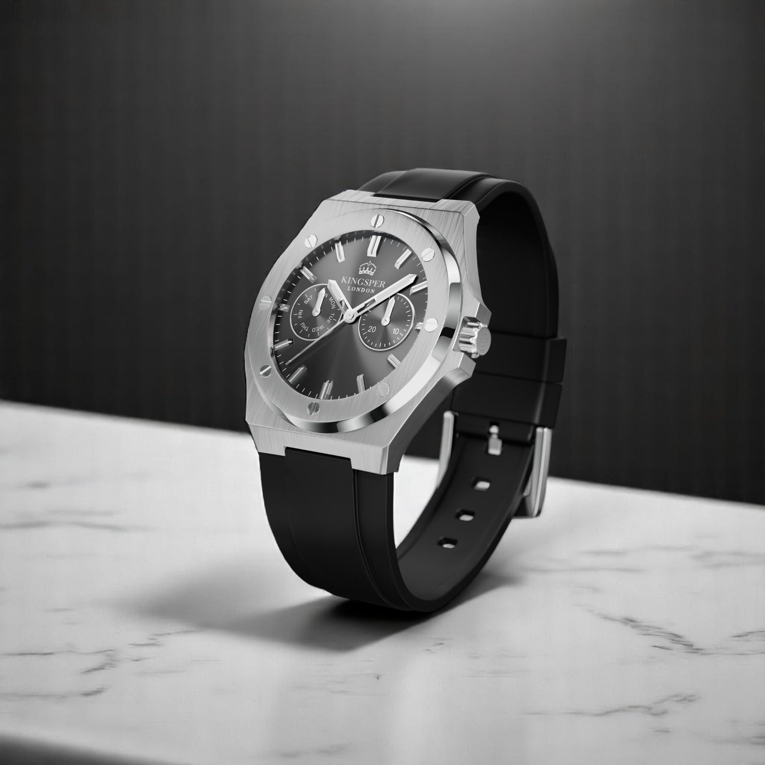 Forged in the historic elegance of London, the Kingsper Carrick watch is a beacon of ambition and style. Worn by the discerning entrepreneur Carrick , it stands as a testament to precision and perseverance amidst the vibrant hustle of the city. As he navigates through pivotal meetings and decisive moments, his Carrick watch is not just a timekeeper, but a symbol of a legacy in the making.