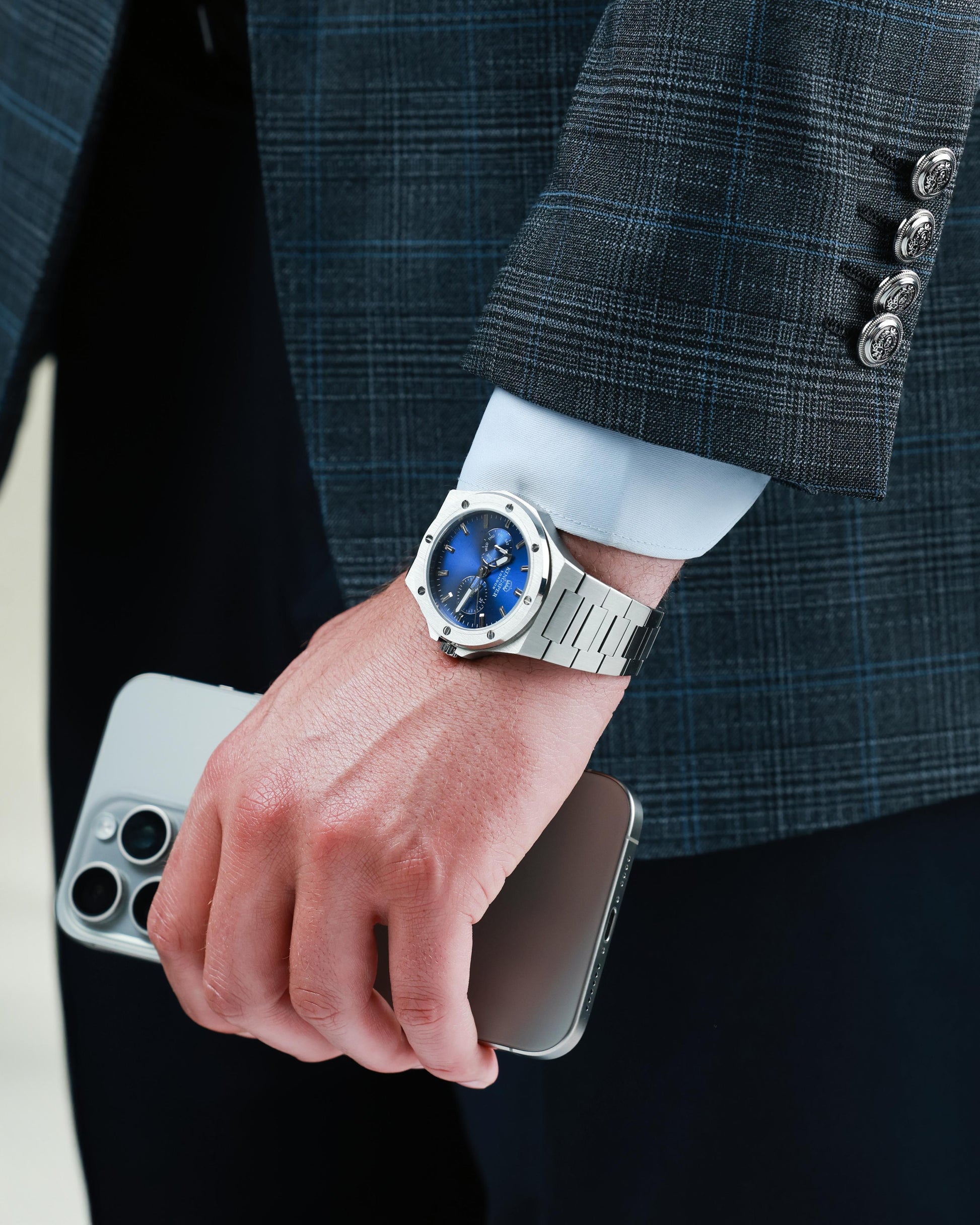 Forged in the historic elegance of London, the Kingsper Carrick watch is a beacon of ambition and style. Worn by the discerning entrepreneur Carrick , it stands as a testament to precision and perseverance amidst the vibrant hustle of the city. As he navigates through pivotal meetings and decisive moments, his Carrick watch is not just a timekeeper, but a symbol of a legacy in the making.