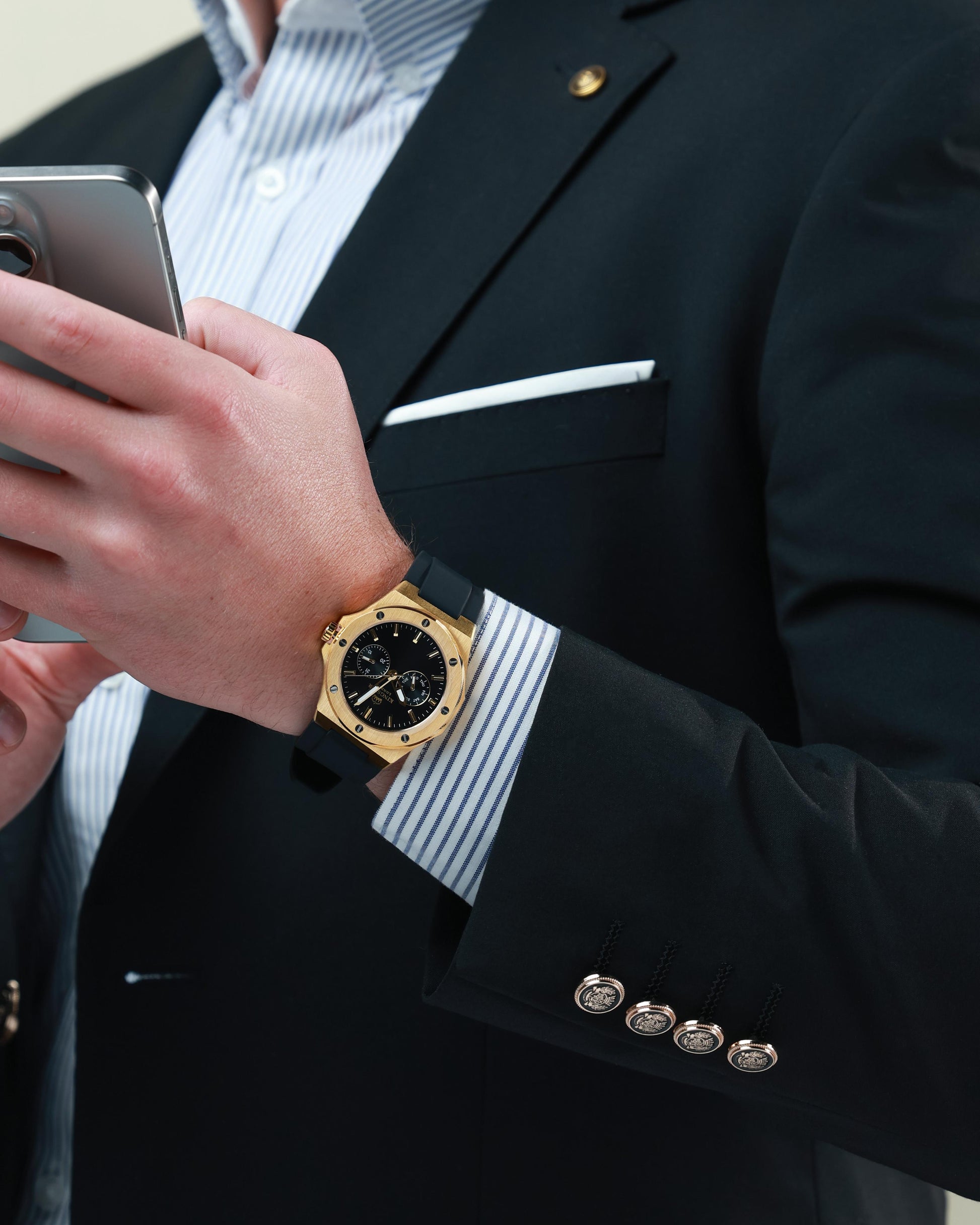 Forged in the historic elegance of London, the Kingsper Carrick watch is a beacon of ambition and style. Worn by the discerning entrepreneur Carrick , it stands as a testament to precision and perseverance amidst the vibrant hustle of the city. As he navigates through pivotal meetings and decisive moments, his Carrick watch is not just a timekeeper, but a symbol of a legacy in the making.