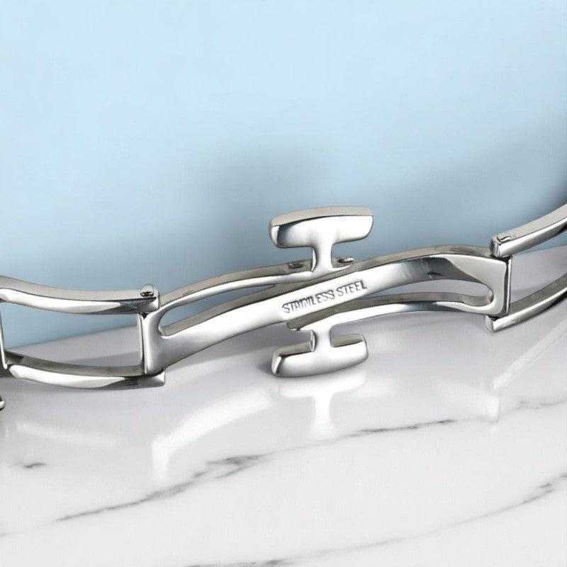 Crafted from high-quality stainless steel, this double-press self-release clasp offers both durability and elegance. Its smooth, polished surface adds a refined touch, while the secure mechanism ensures easy, hassle-free wear and removal.