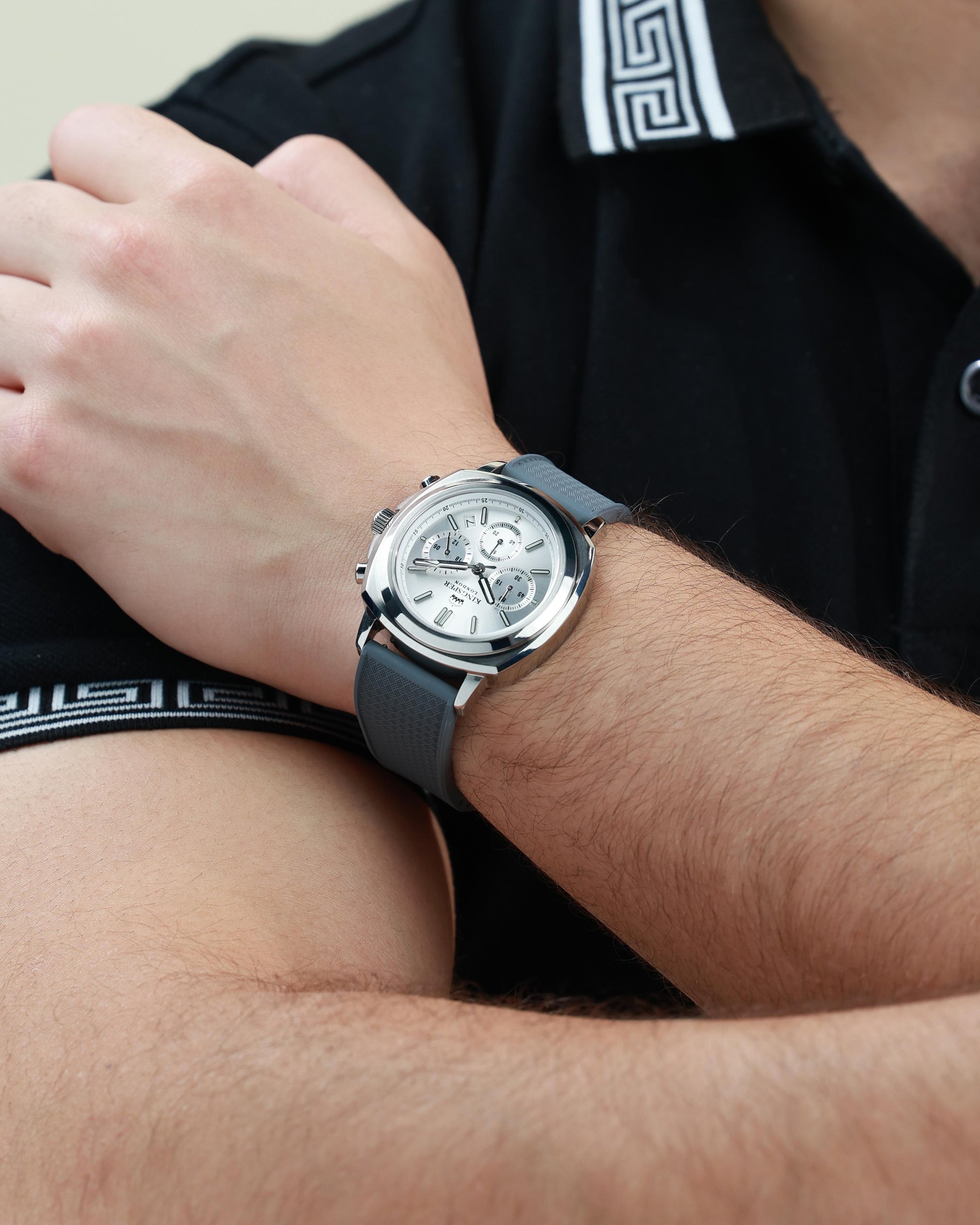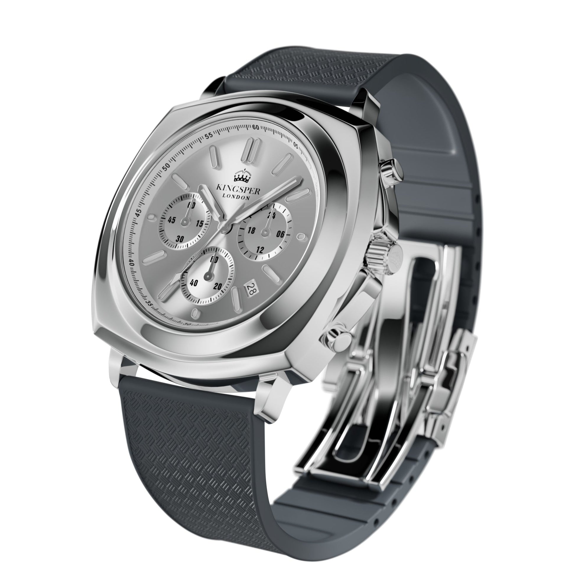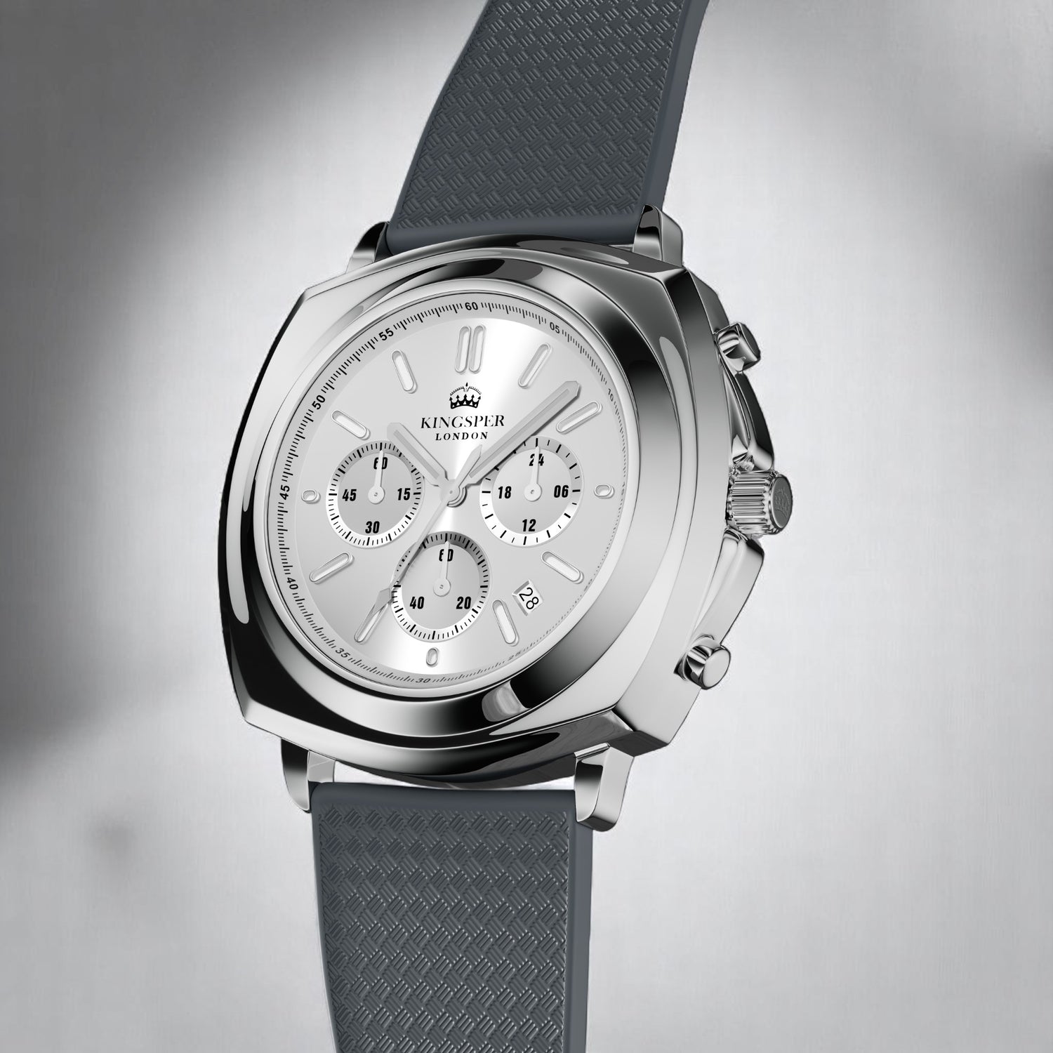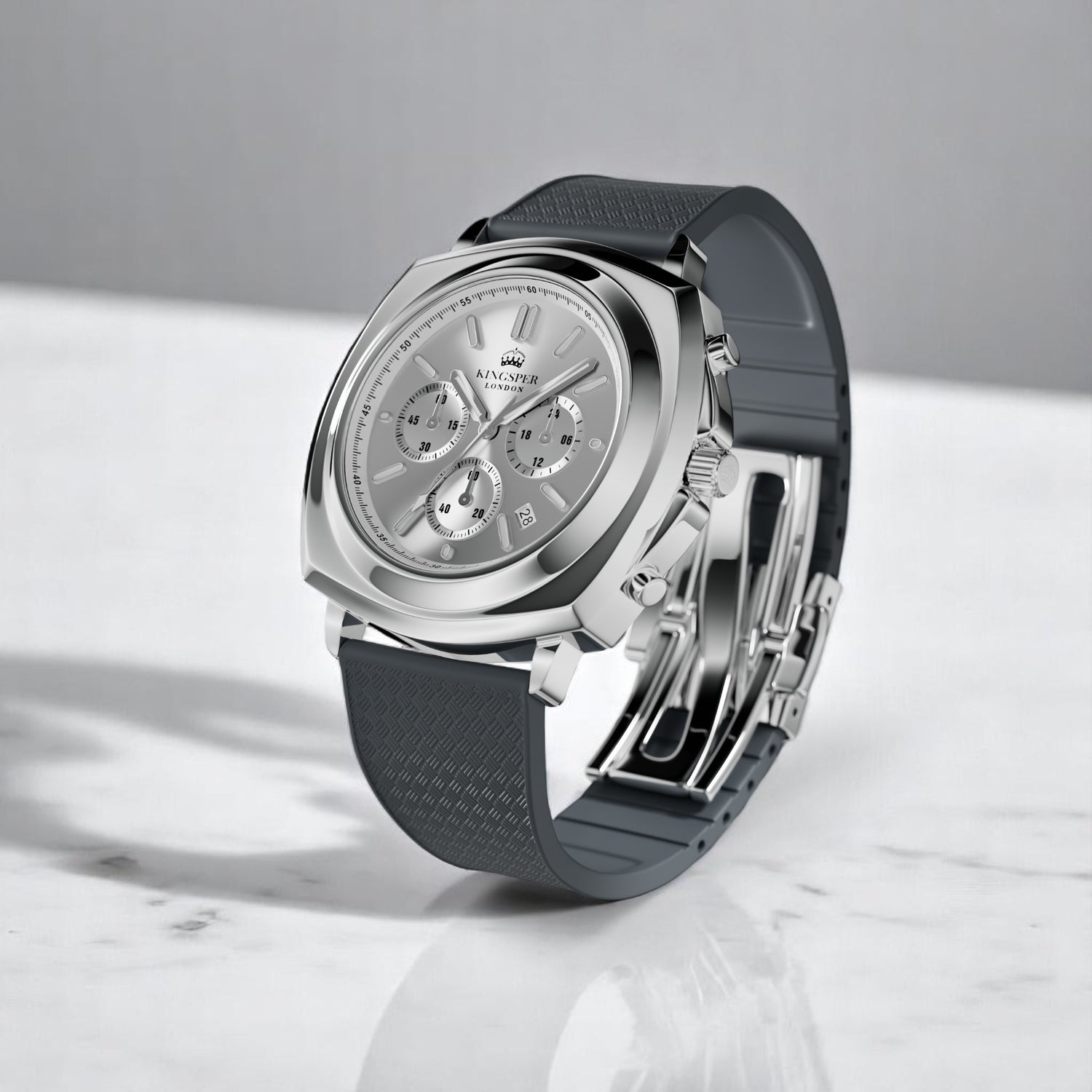 Amid the unyielding pace of the urban sprawl, where each second counts, The Monarch moves with intent. Clad with the Monarch watch by Kingsper. Crafted from polished stainless steel with a light silver dial, this watch is a testament to resilience and refined ambition. As Alex navigates through critical decisions and pivotal moments, his Monarch watch is more than just a timekeeper; it's a symbol of his steadfast pursuit of excellence, mirroring his resolve to master every challenge with precision.