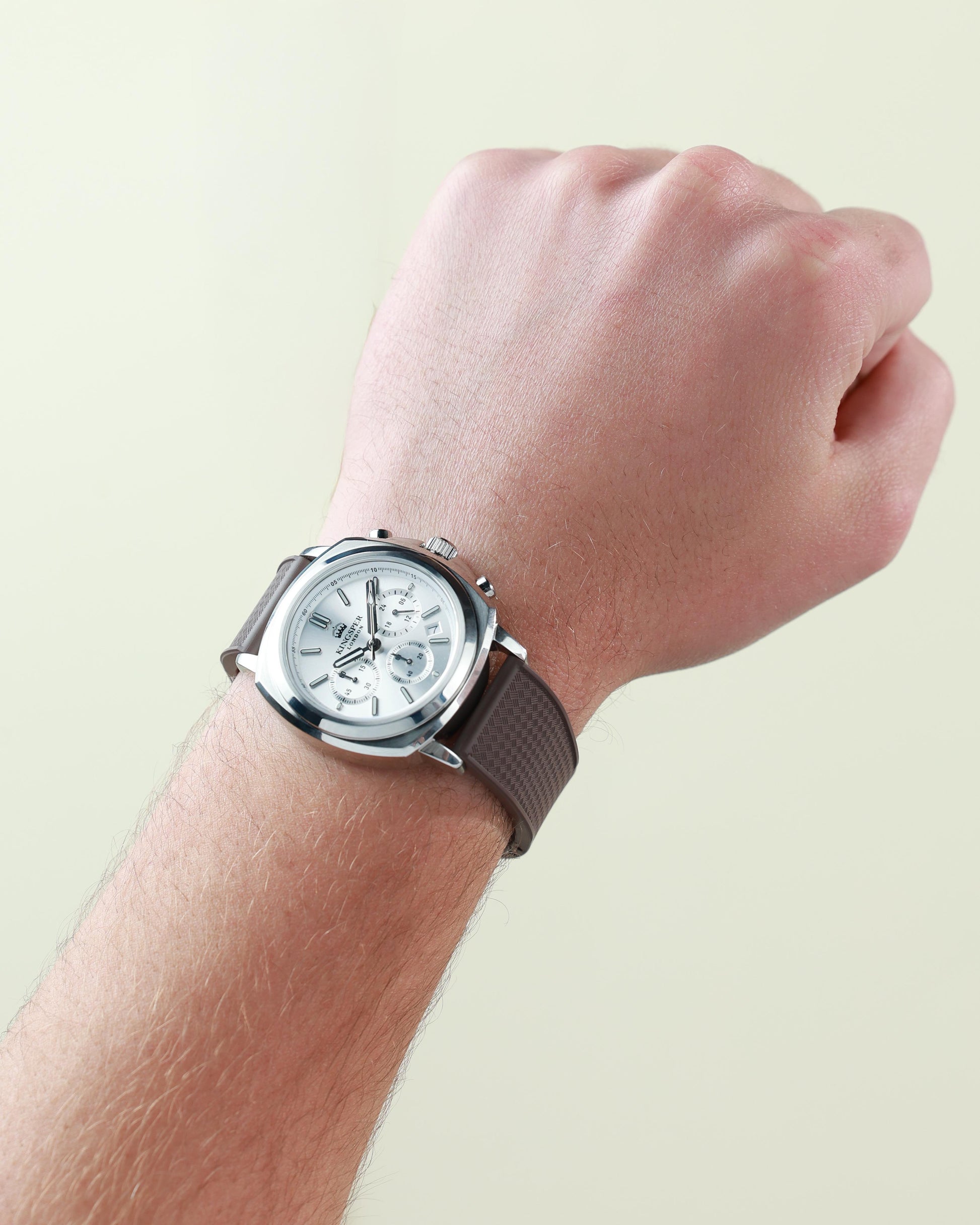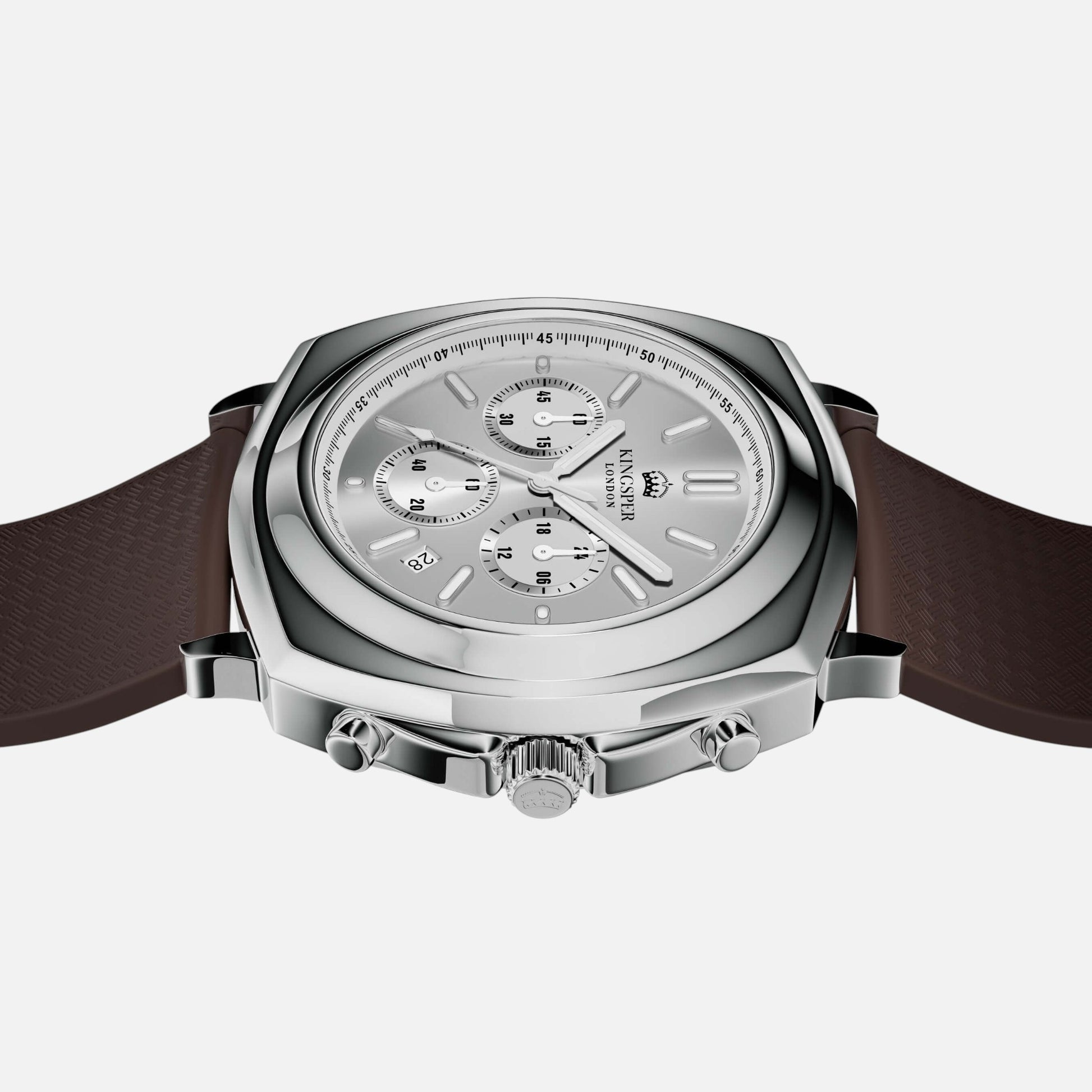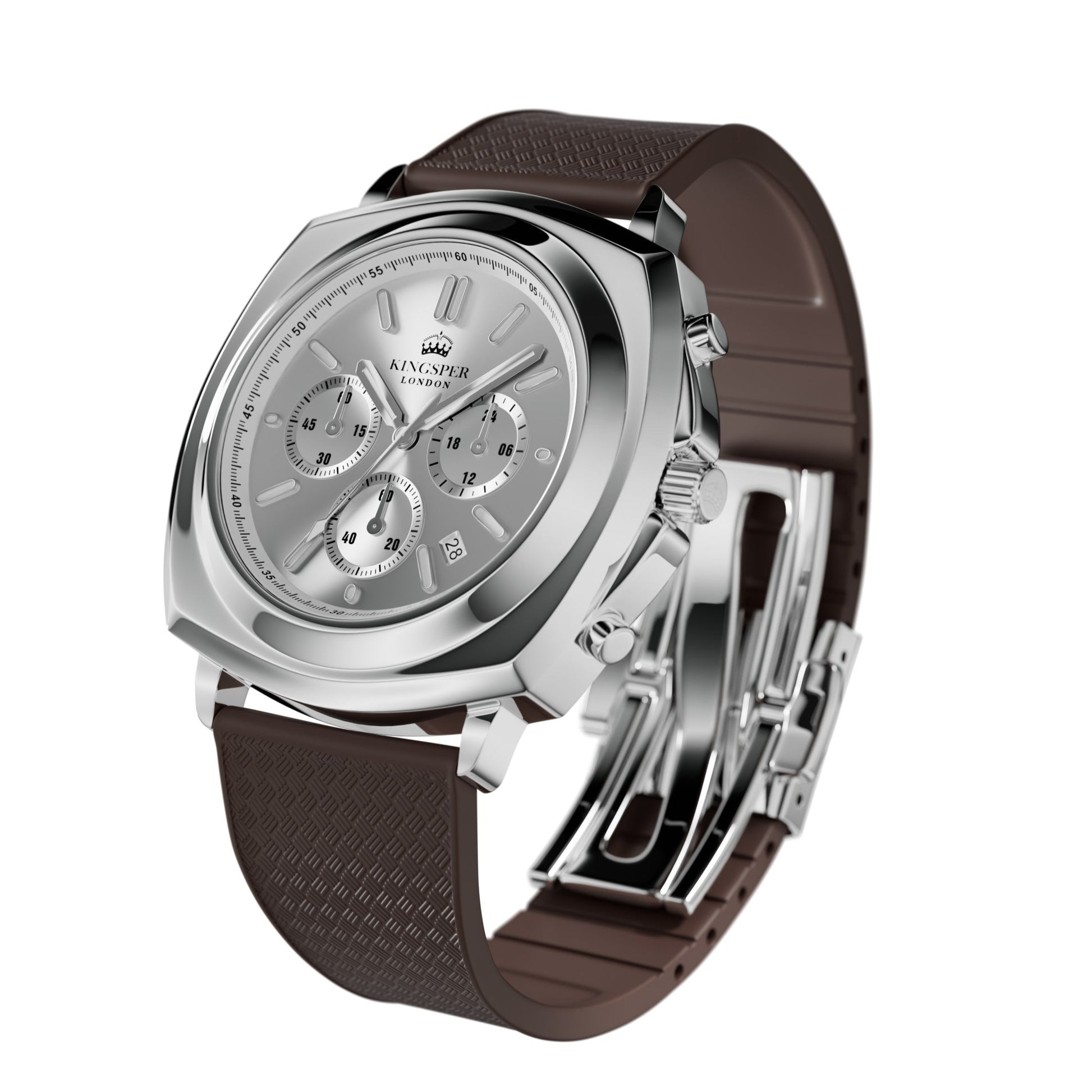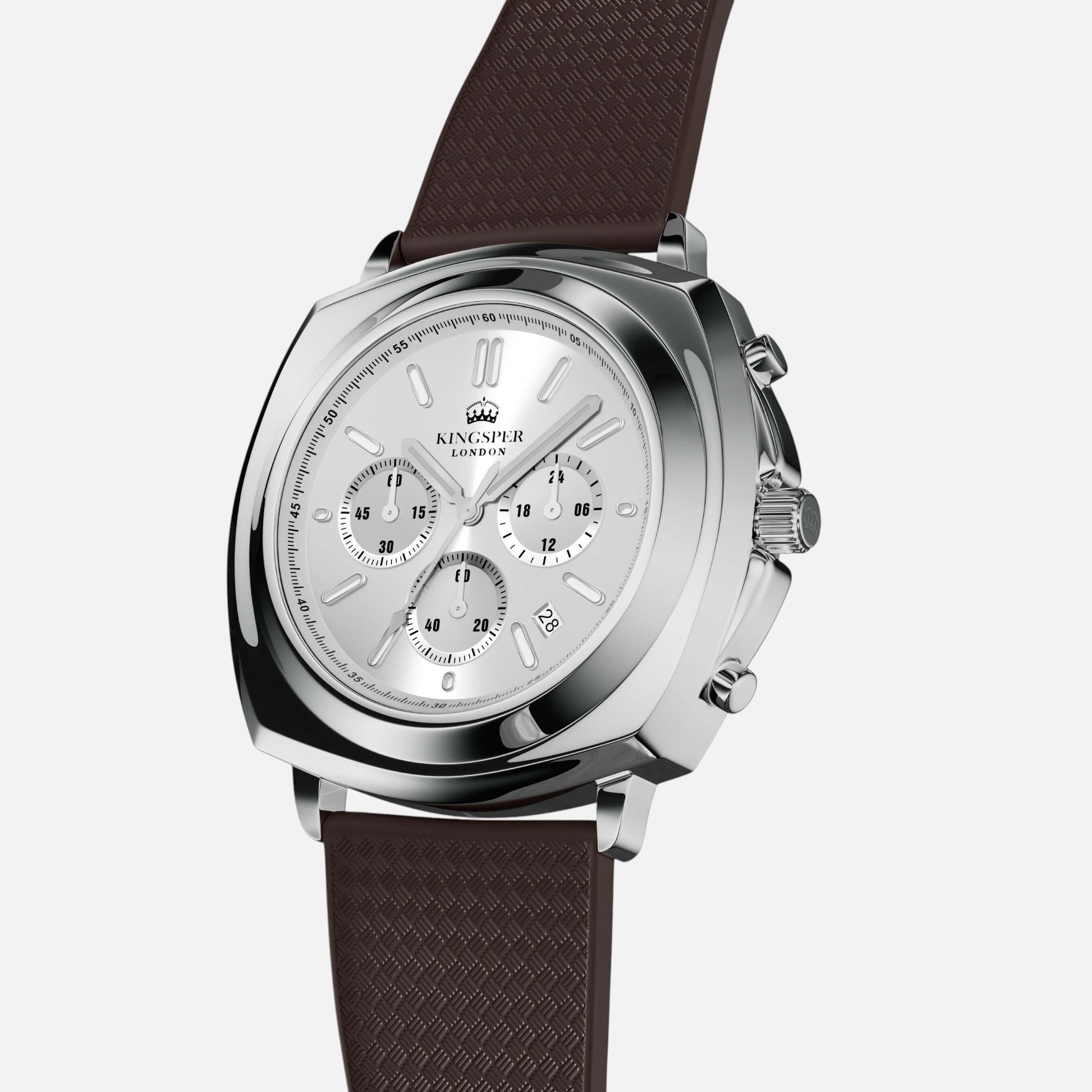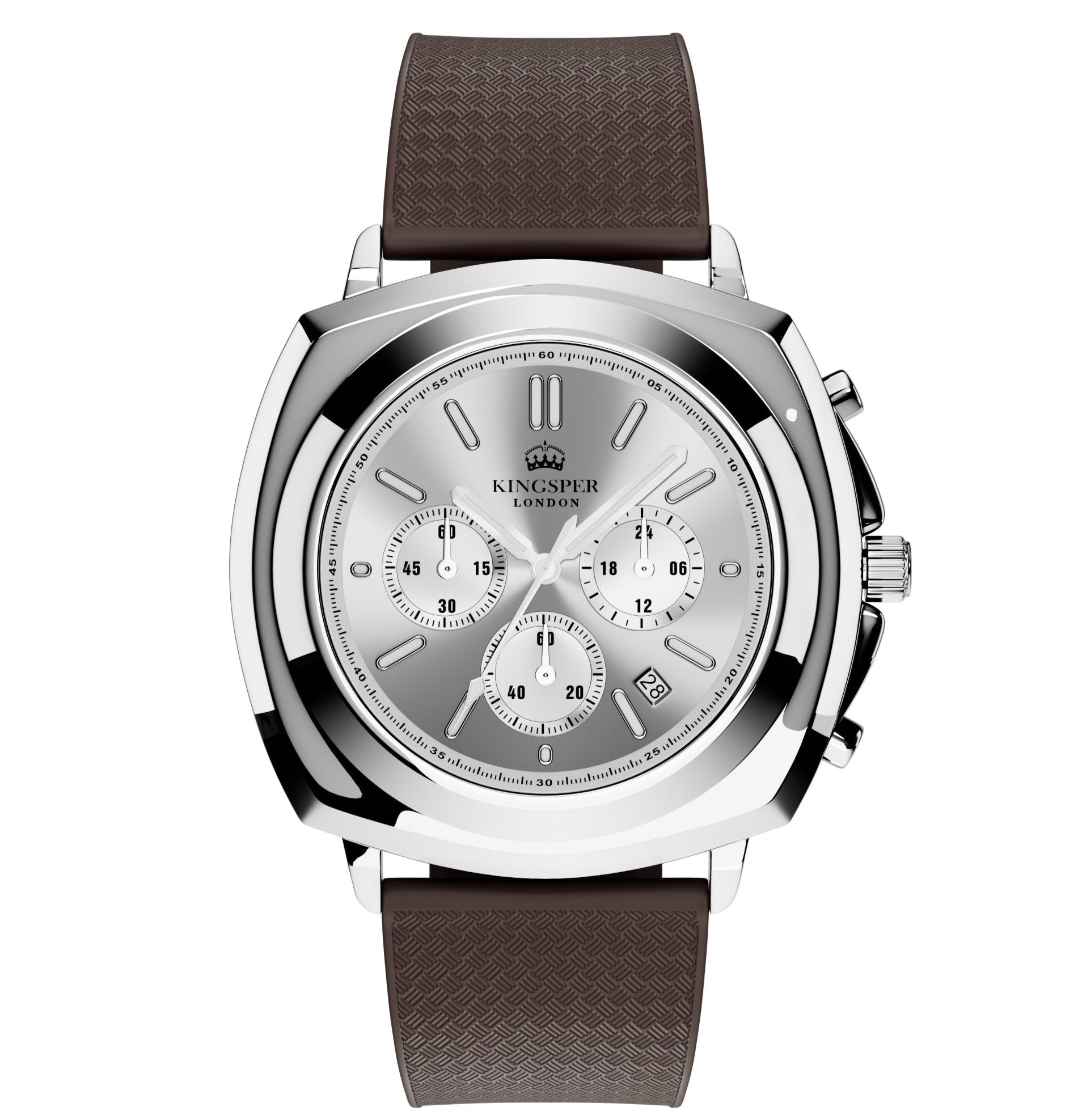Amid the unyielding pace of the urban sprawl, where each second counts, The Monarch moves with intent. Clad with the Monarch watch by Kingsper. Crafted from polished stainless steel with a light silver dial, this watch is a testament to resilience and refined ambition. As Alex navigates through critical decisions and pivotal moments, his Monarch watch is more than just a timekeeper; it's a symbol of his steadfast pursuit of excellence, mirroring his resolve to master every challenge with precision.