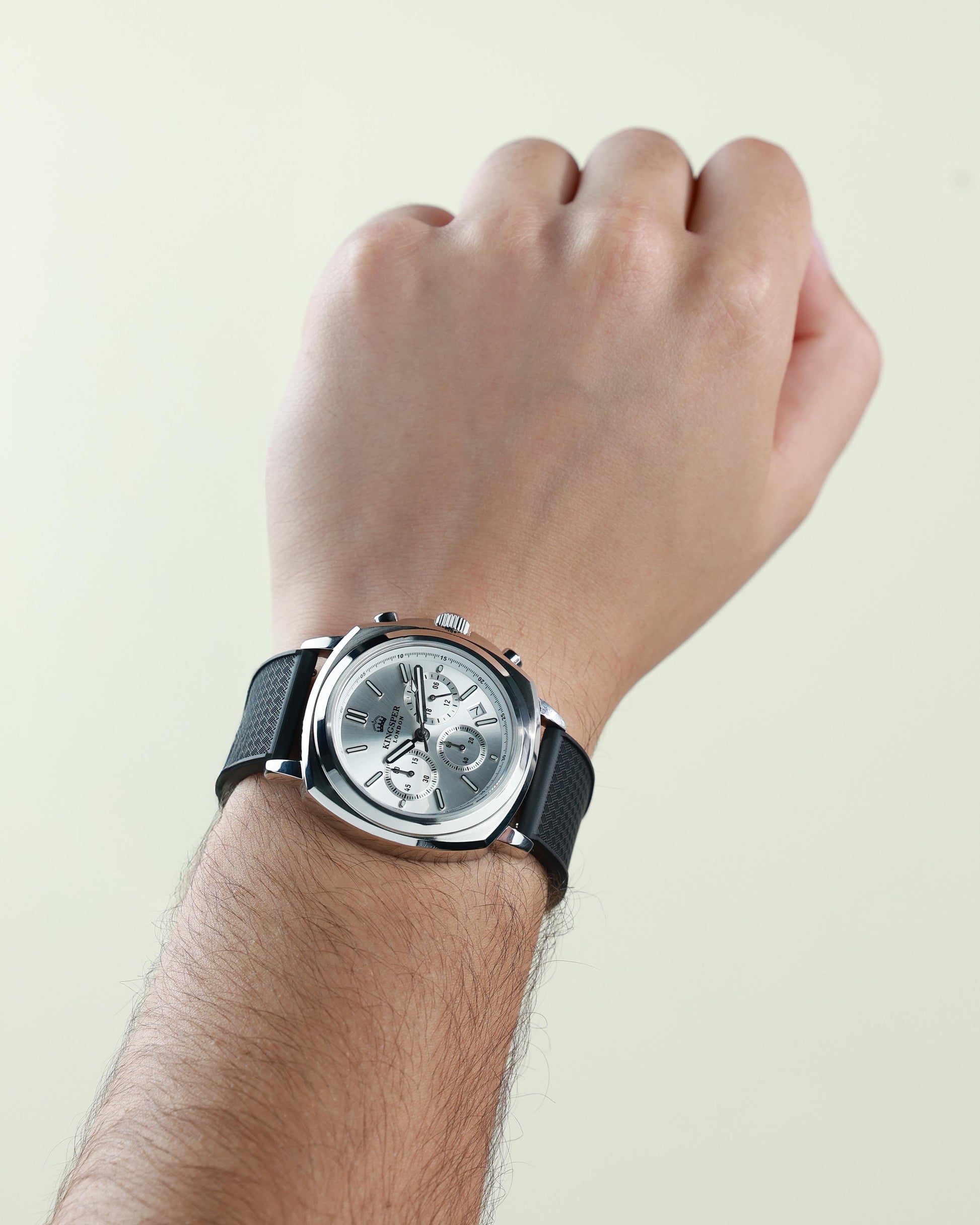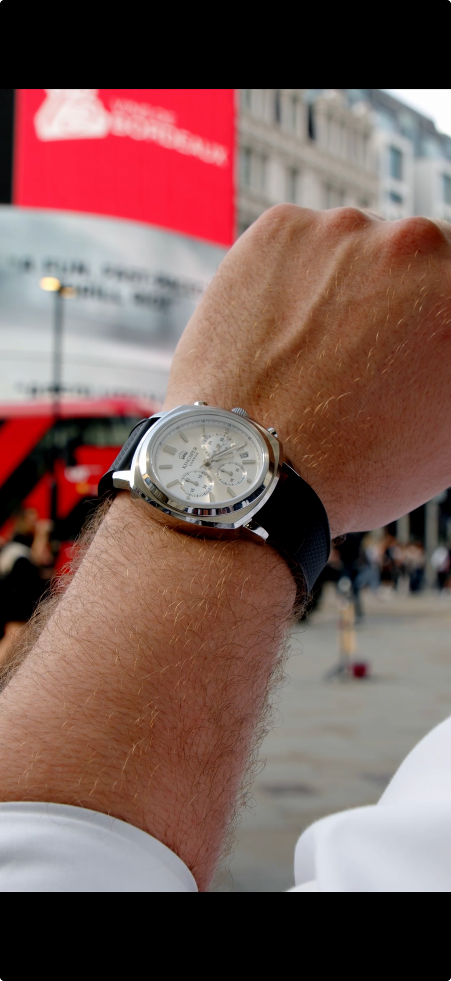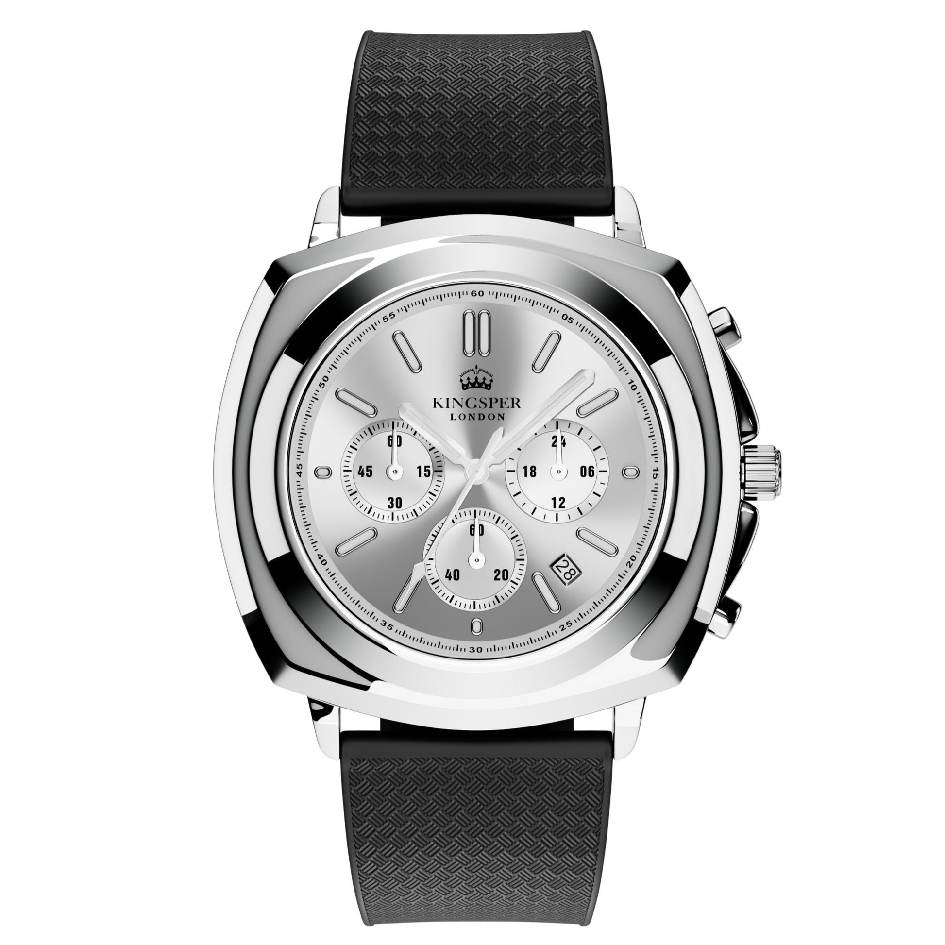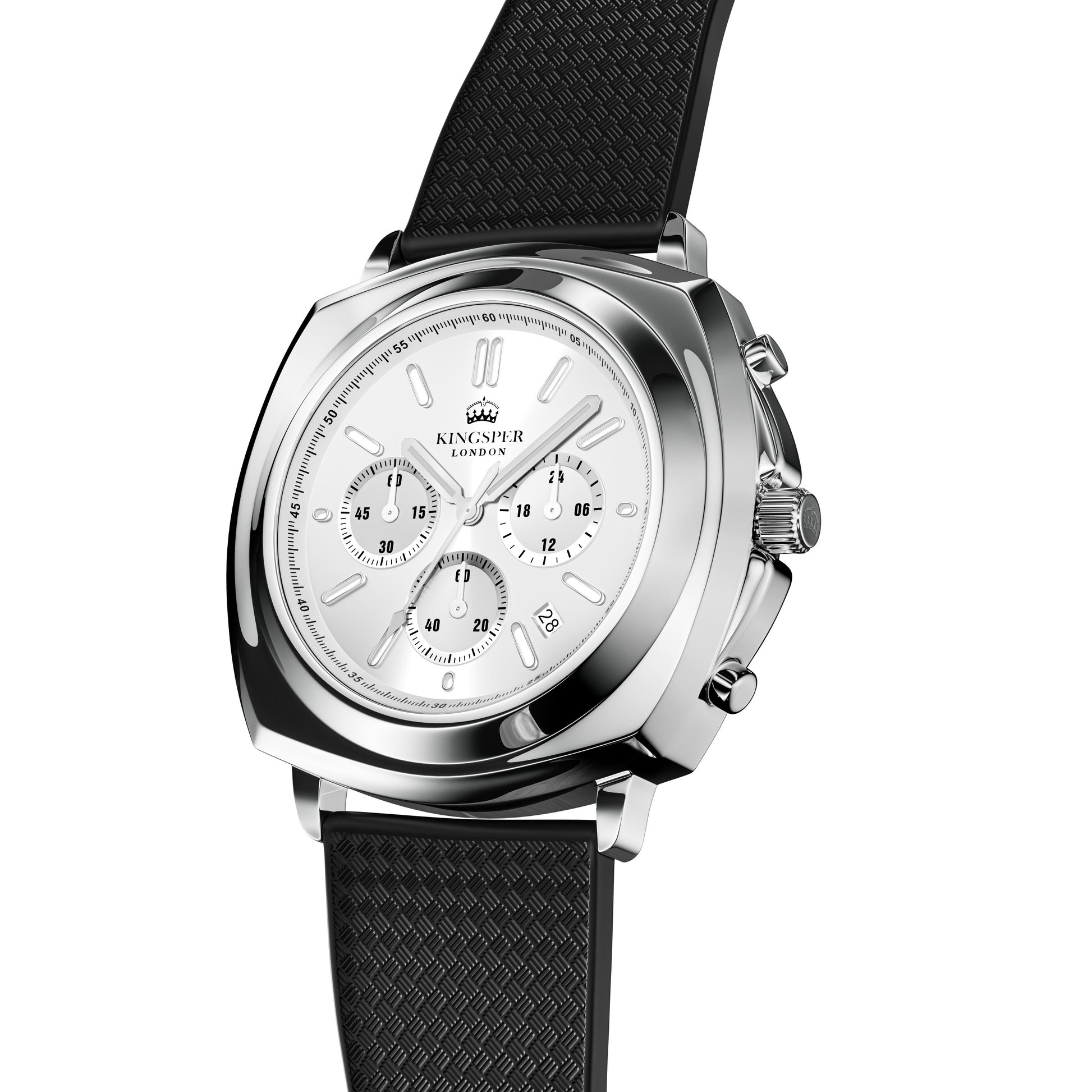 Amid the unyielding pace of the urban sprawl, where each second counts, The Monarch moves with intent. Clad with the Monarch watch by Kingsper. Crafted from polished stainless steel with a light silver dial, this watch is a testament to resilience and refined ambition. As Alex navigates through critical decisions and pivotal moments, his Monarch watch is more than just a timekeeper; it's a symbol of his steadfast pursuit of excellence, mirroring his resolve to master every challenge with precision.