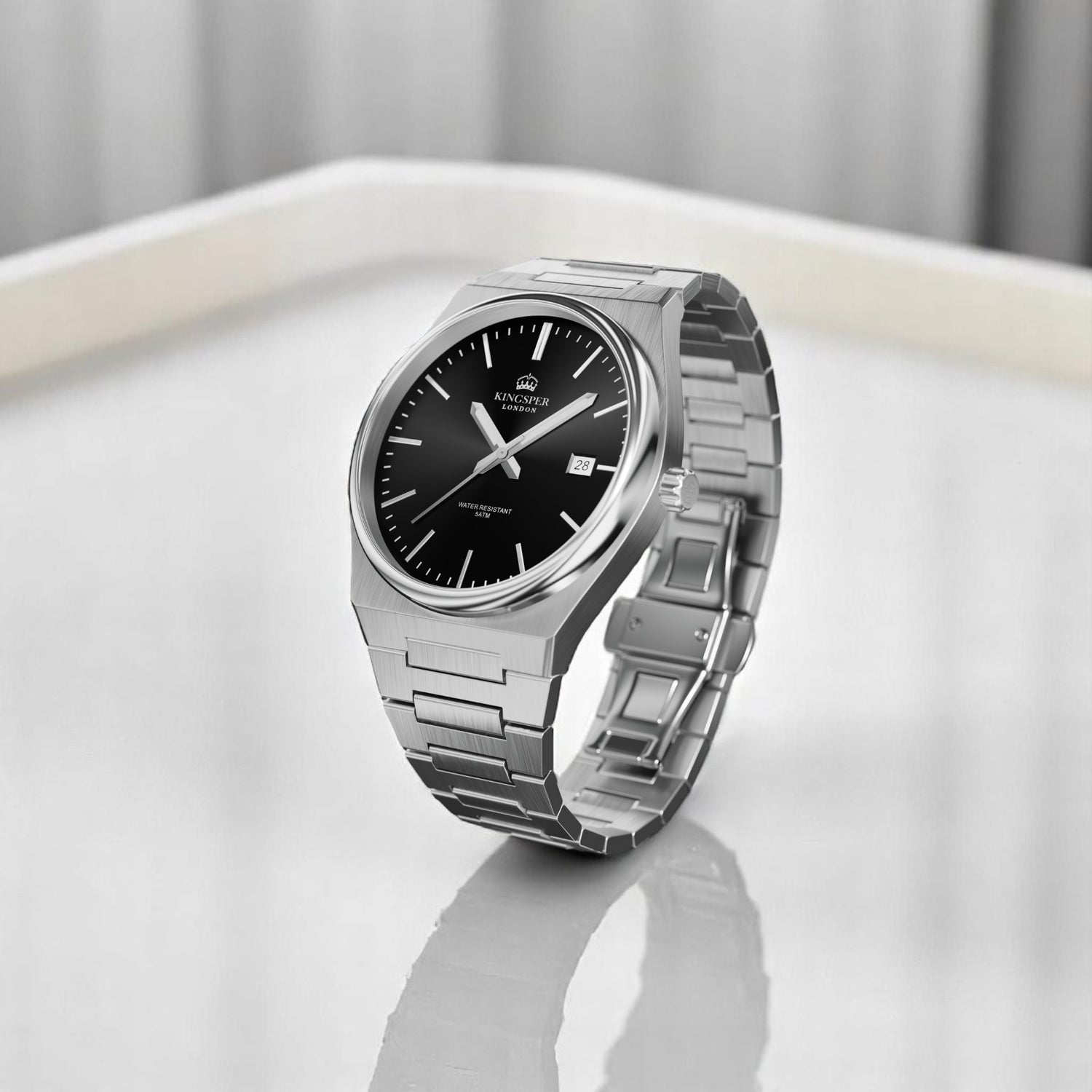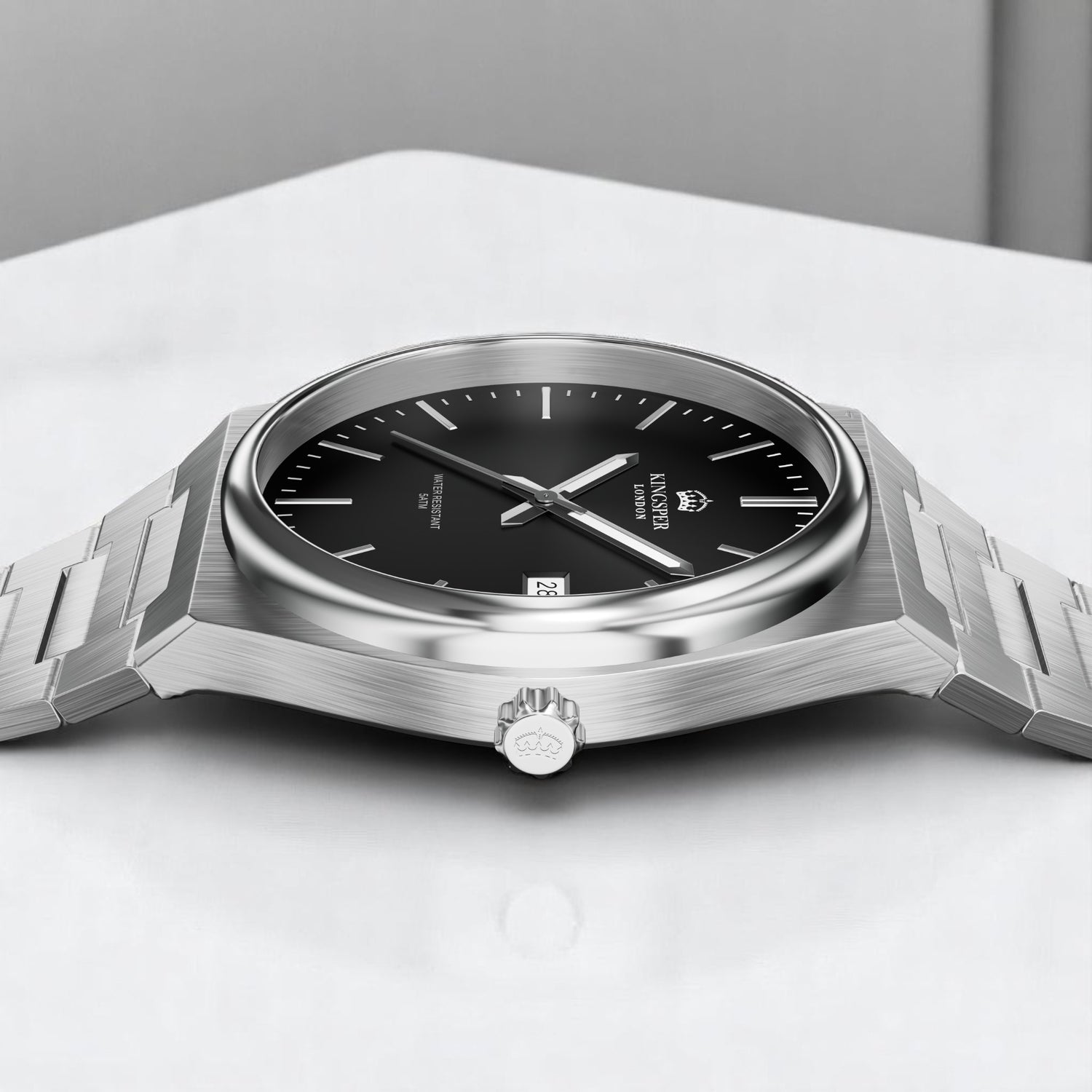 The Somerset watch includes a seamlessly integrated date display, combining utility with elegance. Perfectly positioned for easy viewing, this feature allows you to effortlessly keep track of the time and date while maintaining the watch's sleek and polished aesthetic.