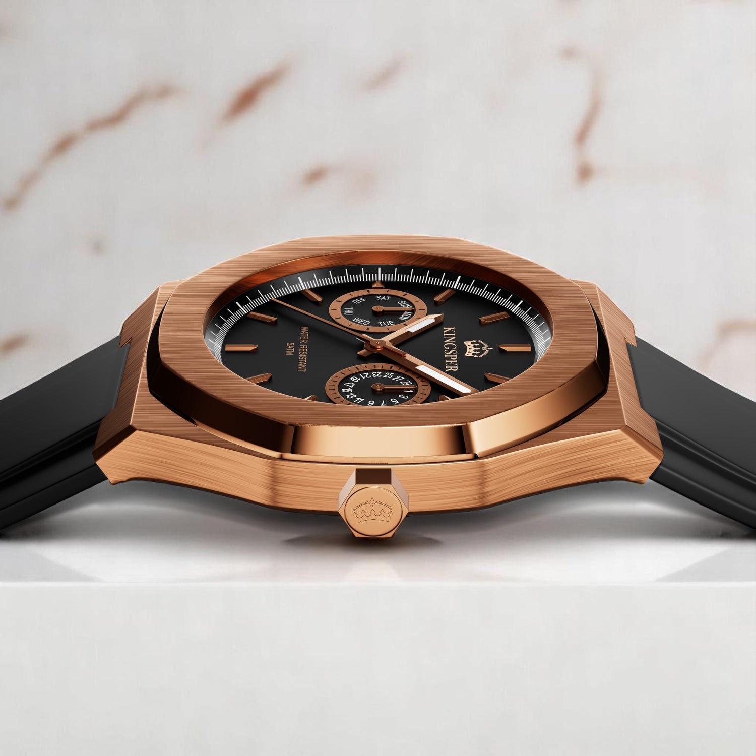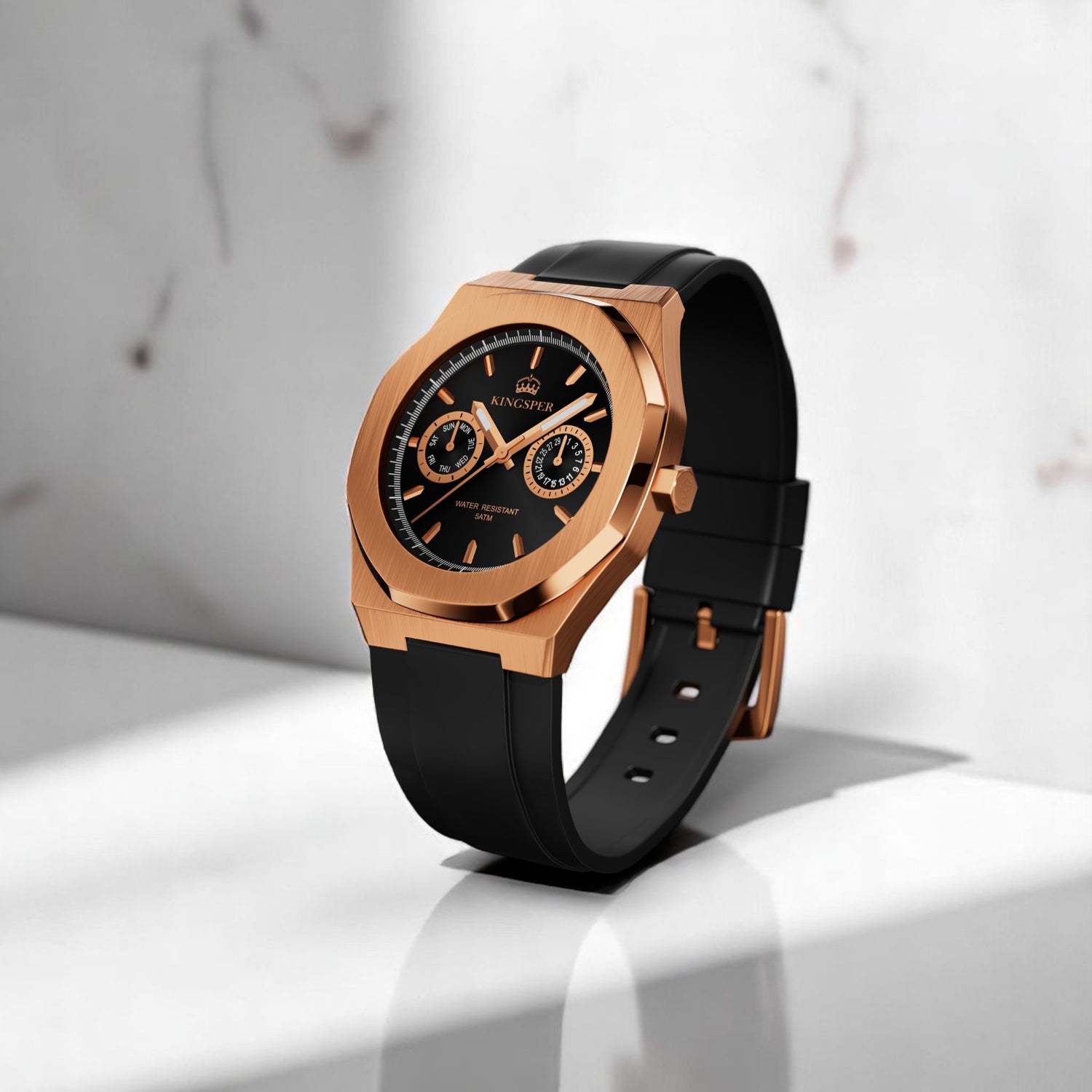 Forged in the historic elegance of London, the Kingsper Valiant watch is a beacon of ambition and style. Worn by the discerning entrepreneur Valiant, it stands as a testament to precision and perseverance amidst the vibrant hustle of the city. As he navigates through pivotal meetings and decisive moments, his Valiant watch is not just a timekeeper, but a symbol of a legacy in the making.